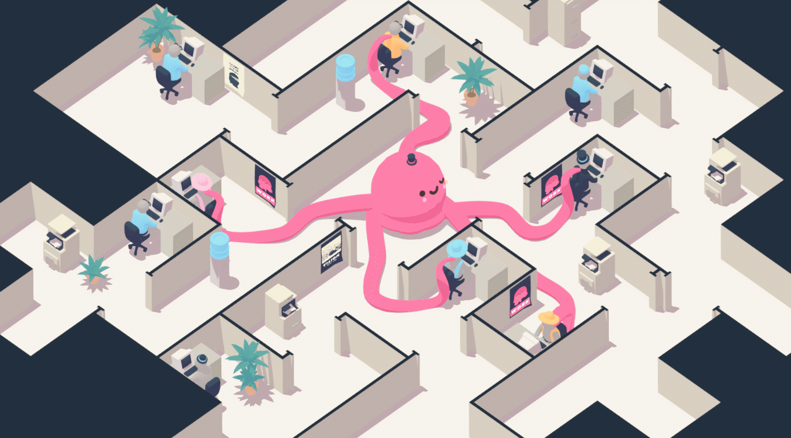 Assume the role of a blobby, monstrous middle manager, which can grow tentacles, control workers, devour the unworthy, and more to come.