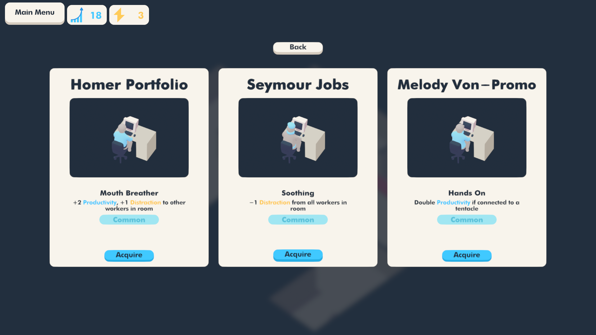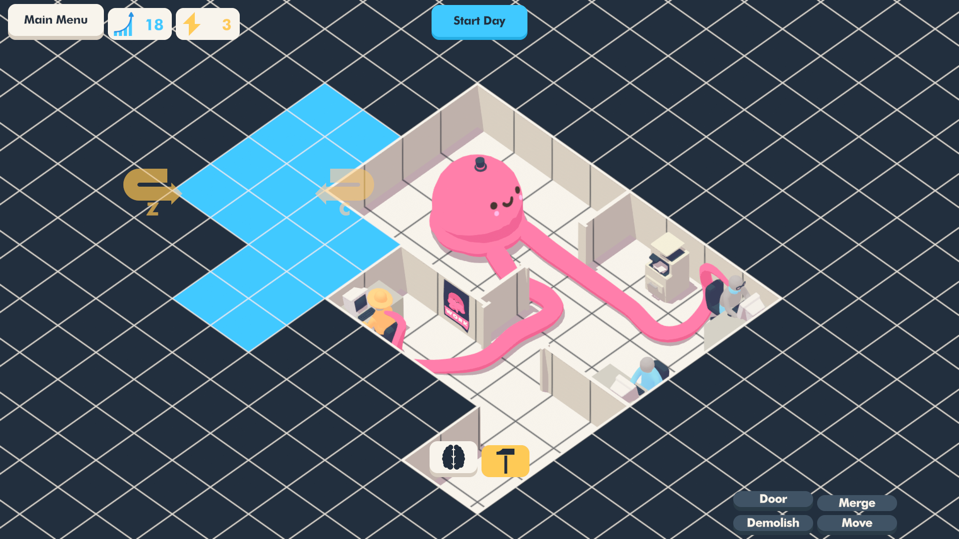 Unlock more rooms, workers, furniture, brain lobes, and clients as your management skills improve.