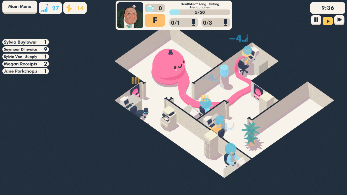Middle Management is a satirical office building and management game. Design an office. Hire the right talent. Spread your tentacles. Keep your rebellious workers productive. Delve into brains to design the perfect employees. DON'T YOU DARE cross your boss or his INFLUENTIAL clients.